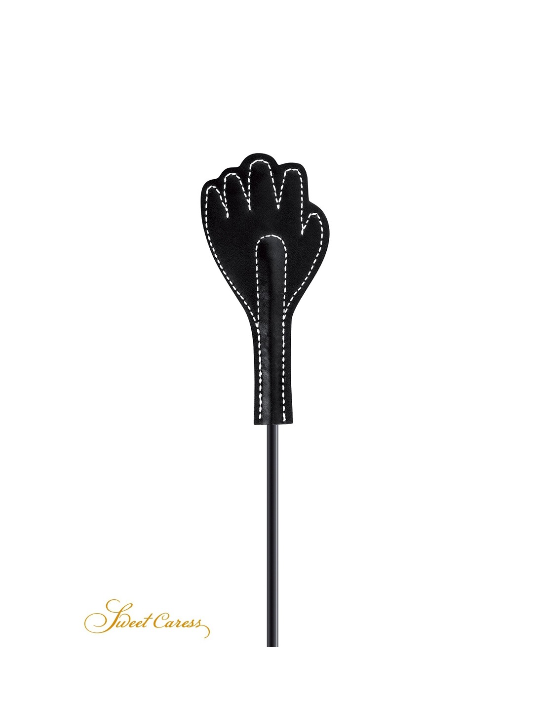 Une claquette en forme de main noire est fixée à l'une de ses extrémités. Les coups portés infligeront de légères morsures et les punitions seront plus morales que physiques.