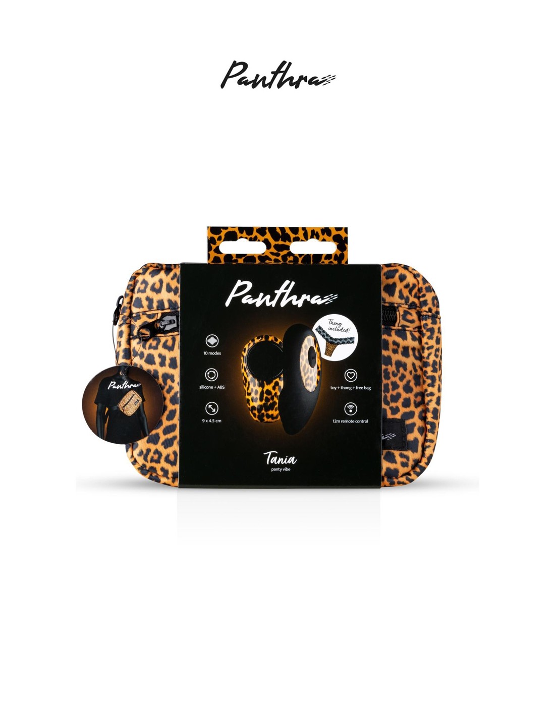 Avec son coloris panthère et sa pochette de transport assortie, la culotte vibrante télécommandée Tania Panty Vibe de la marque Panthra est le cadeau idéal à offrir à votre partenaire.