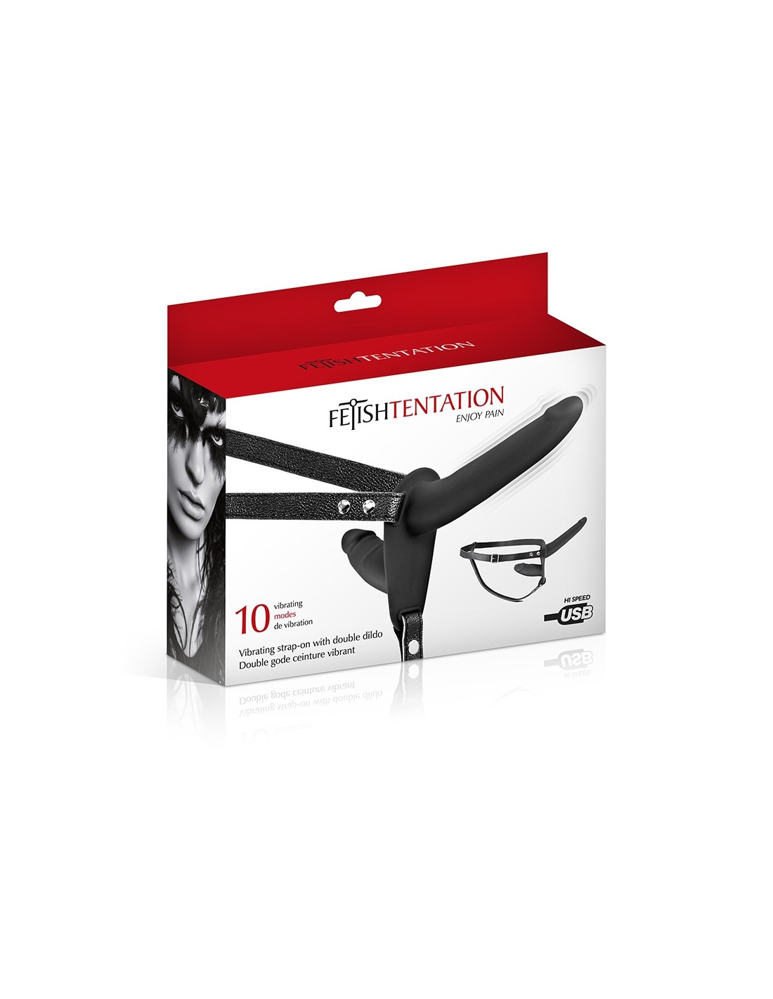 Double gode ceinture vibrant (10 modes de vibrations) de la marque Fetish Tentation pour jouir du plaisir de la pénétration réciproque en couple homme / femme ou femme / femme.