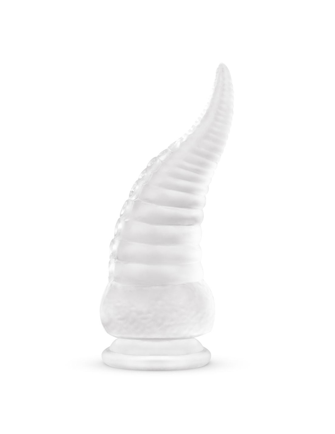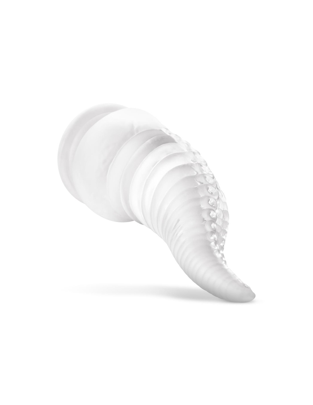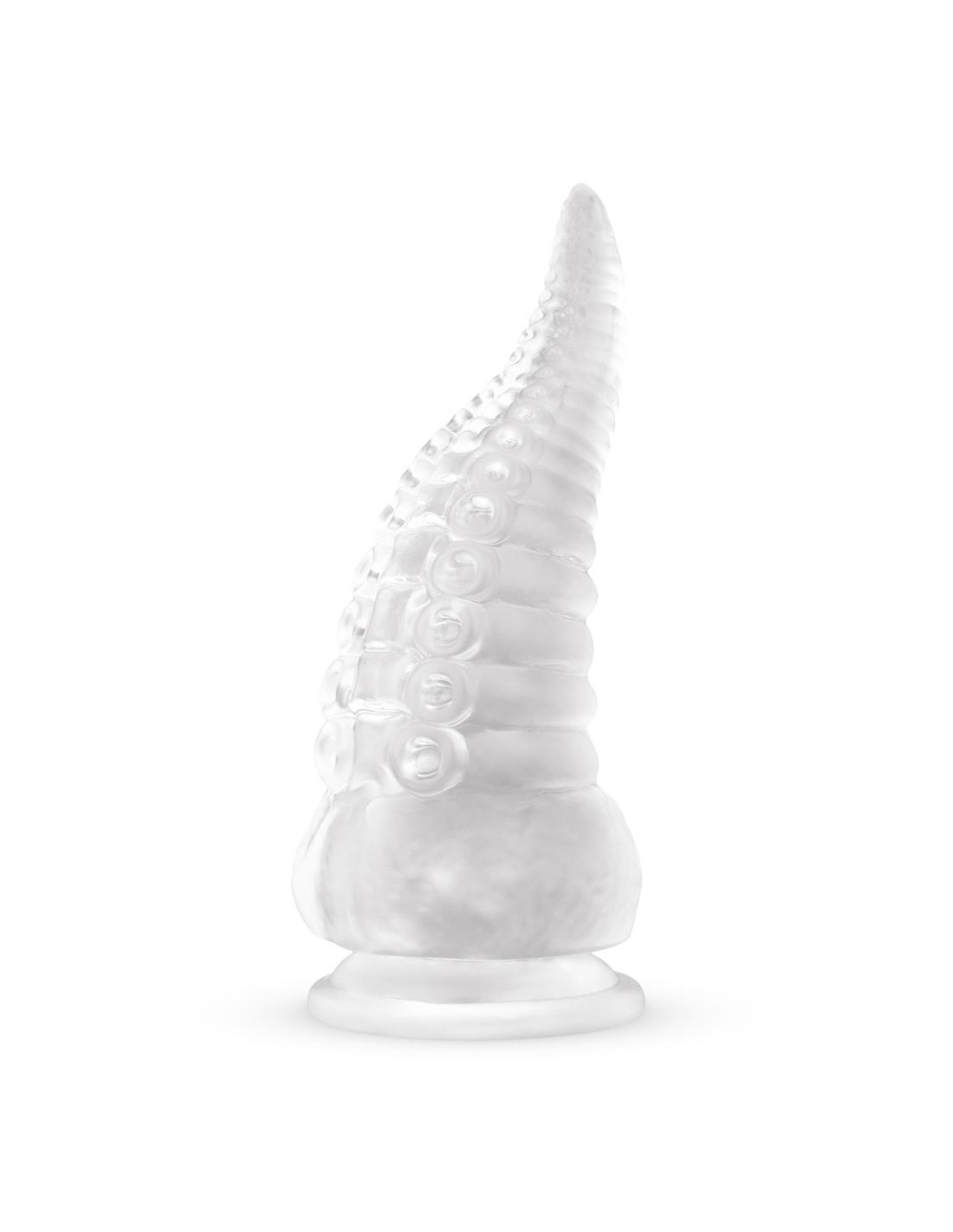 Gode ventouse en silicone 20 cm de long, design unique blanc translucide inspiré d'une tentacule.