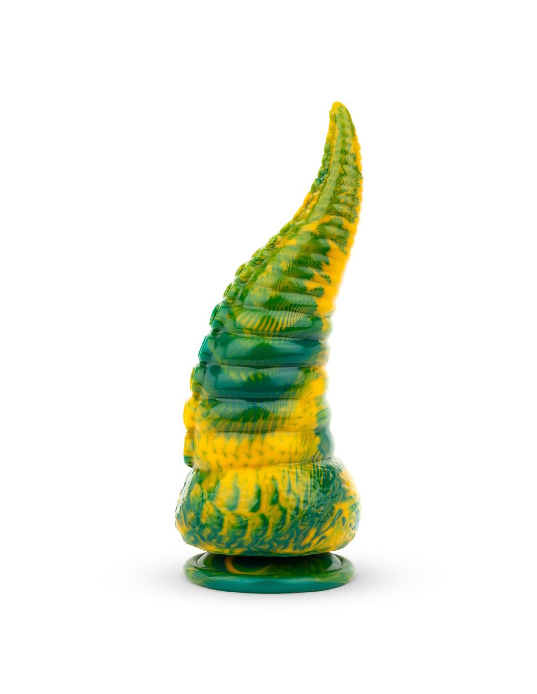 Issu de la collection de sextoys fantaisie "créatures" Mythical Mates, de couleur vert vif et jaune, le dildo Tentacle Delight puise son inspiration dans la pointe d'une tentacule !