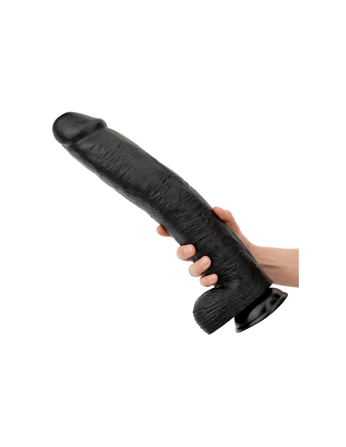 Fabriqué en PVC, ce dildo affiche une longueur totale de 43,2 cm et un diamètre maximal de 7,5 cm. Il peut être utilisé aussi bien de manière anale que vaginale, mais assurez-vous de vous habituer progressivement à sa taille et utilisez une généreuse quantité de lubrifiant.
