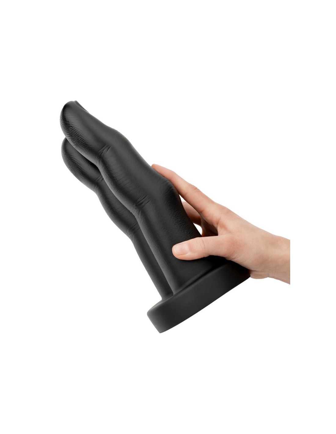 La base solide assure que le jouet reste fermement en place une fois inséré. La surface est modelée sur une vraie main et assure une stimulation supplémentaire lors de l'insertion.