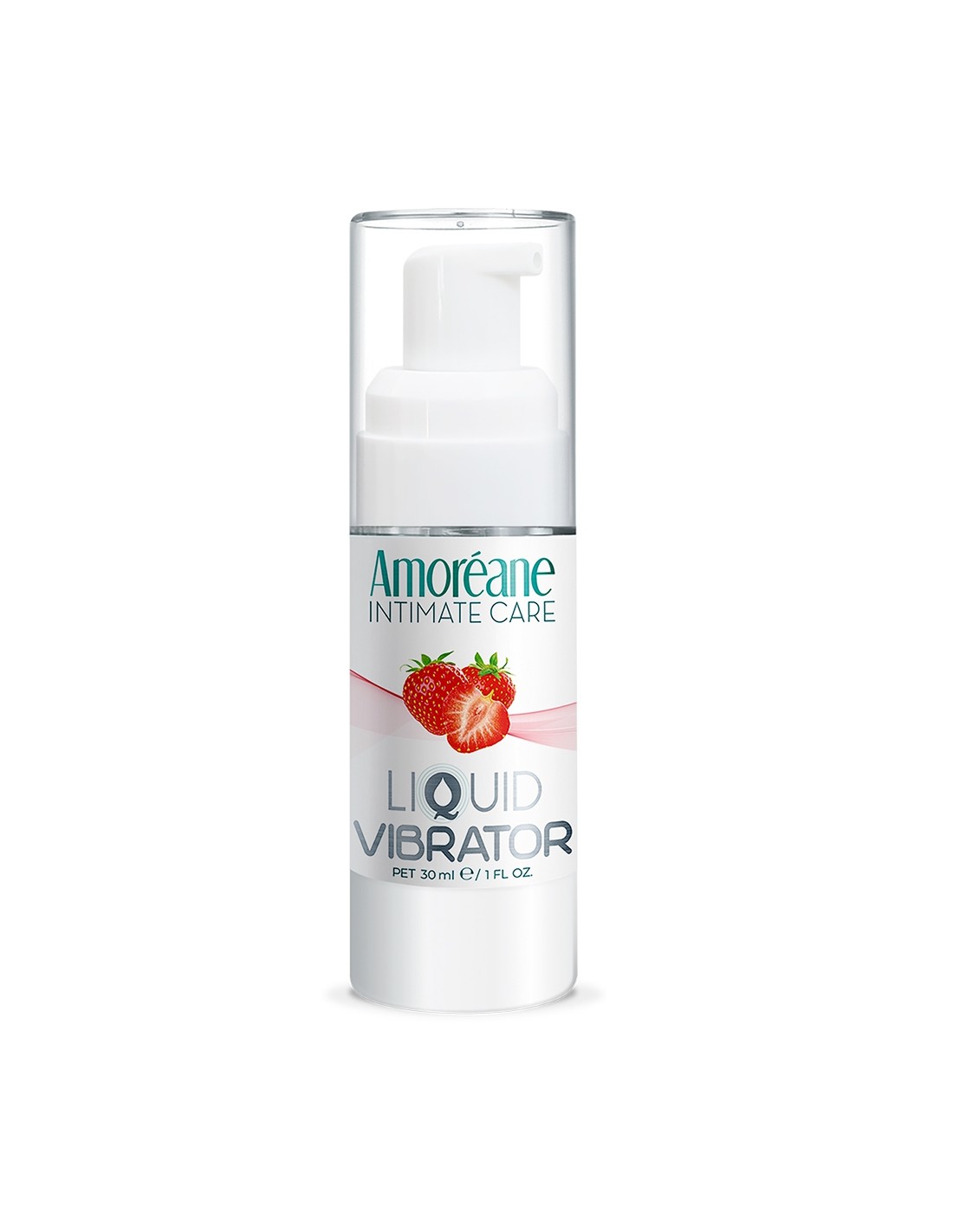 Liquid Vibrator Fraise, fabriqué par Amoréane Med est un lubrifiant intime médical à base d'eau parfumé à la fraise avec effet vibrant.
