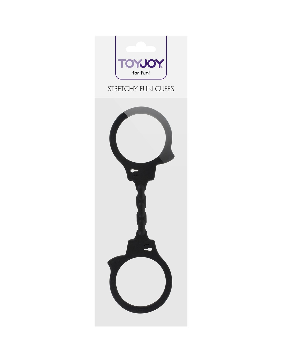 Les Stretchy Fun Cuffs, de la marque Toy Joy, sont des menottes de couleur noire en silicone extensible, idéales pour réaliser vos fantasmes de soumission et de domination, cela sans aucun risque de vous blesser.