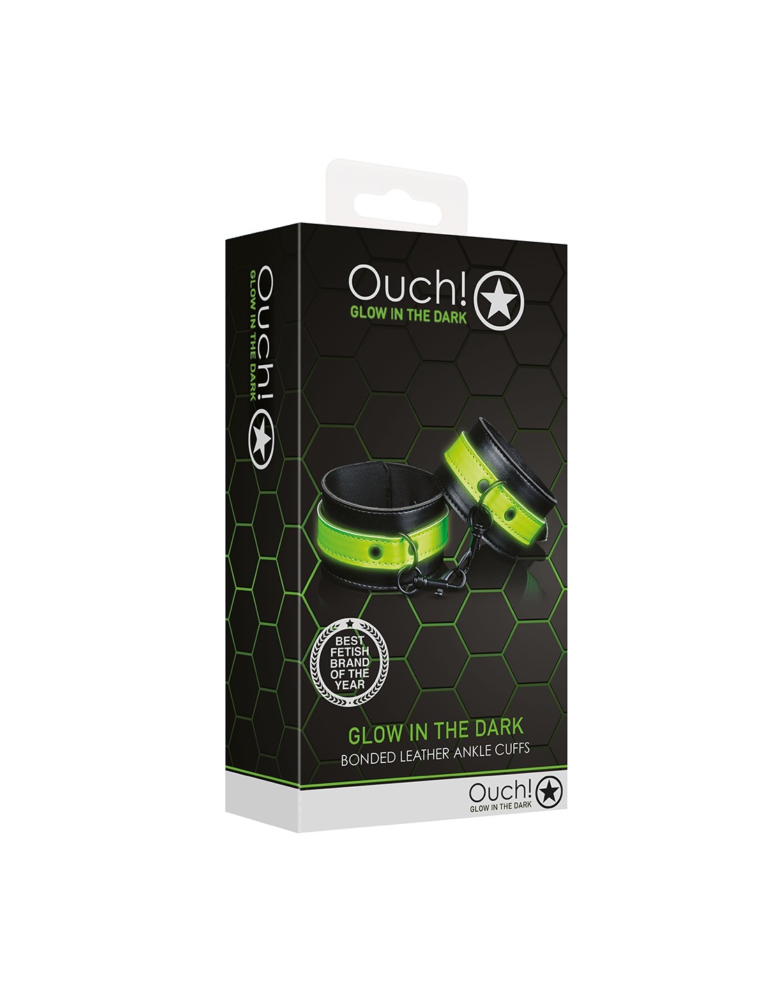 Ouch! Glow in the Dark, le futur du bondage est arrivé. Conçu avec une esthétique bondage authentique, mais présentant l'avantage de briller dans lobscurité, les détails verts phosphorescents transformeront chaque événement en une fête.