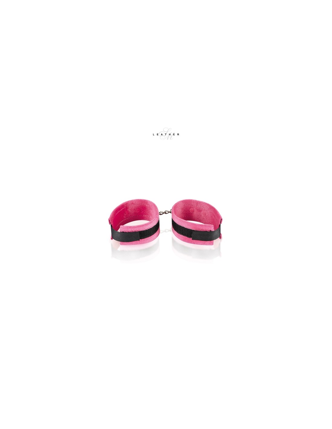 Paire de menottes réglables rose et noir pour poignets, très douces, avec fermeture velcro, fabriquées par Leather SM.