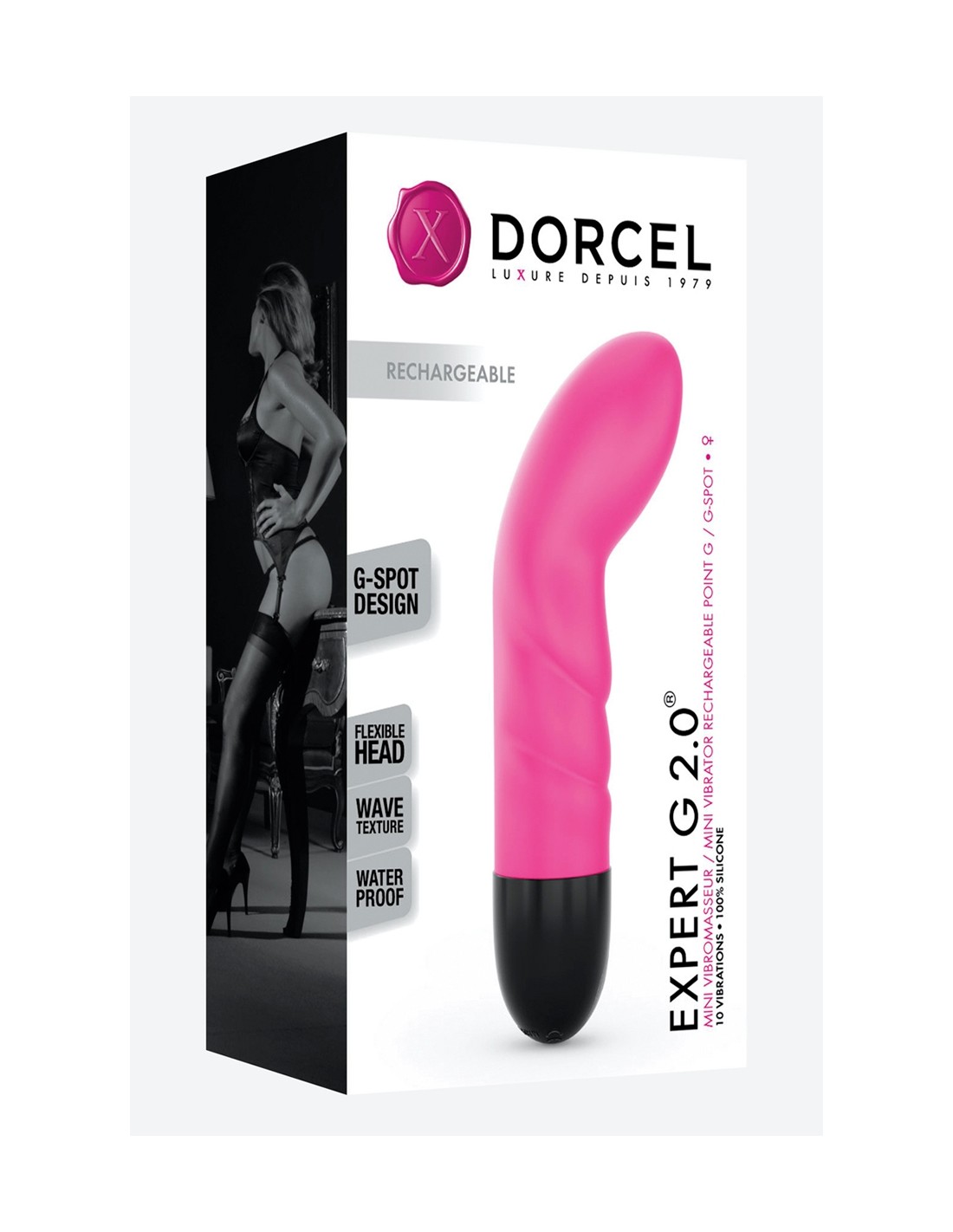 Dédié au plaisir féminin, le mini stimulateur Expert G 2.0 de Dorcel est la nouvelle version rechargeable de l'incontournable petit vibromasseur en silicone, spécialiste de la stimulation du point G et de l'orgasme féminin.