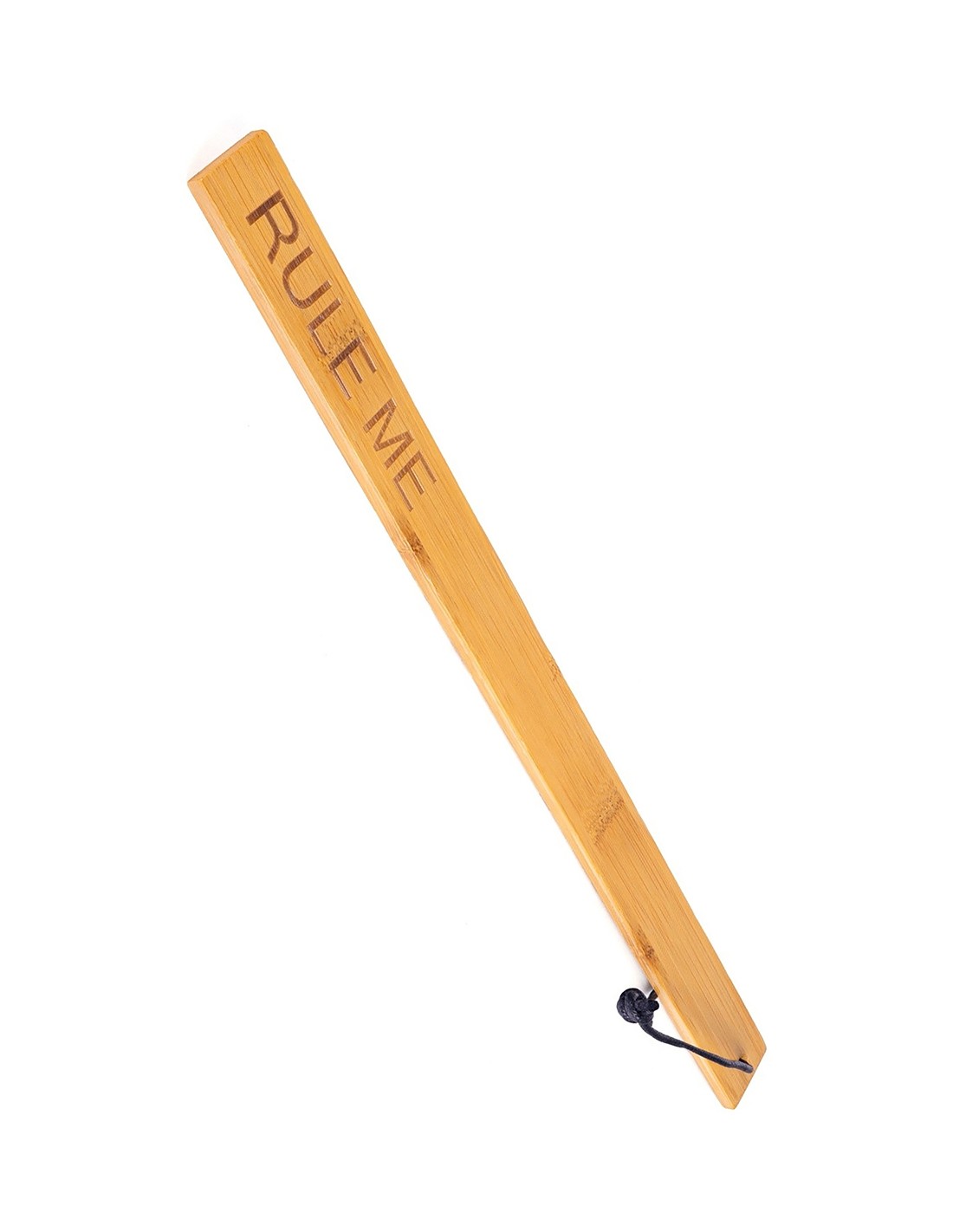 Avec son Design fin et rigide, le paddle BDSM en bambou "Rule Me" est idéal pour prodiguer de cuisantes fessées à votre soumis.e. L'inscription Rule Me (contrôle-moi en anglais) est gravée sur une des faces du paddle.