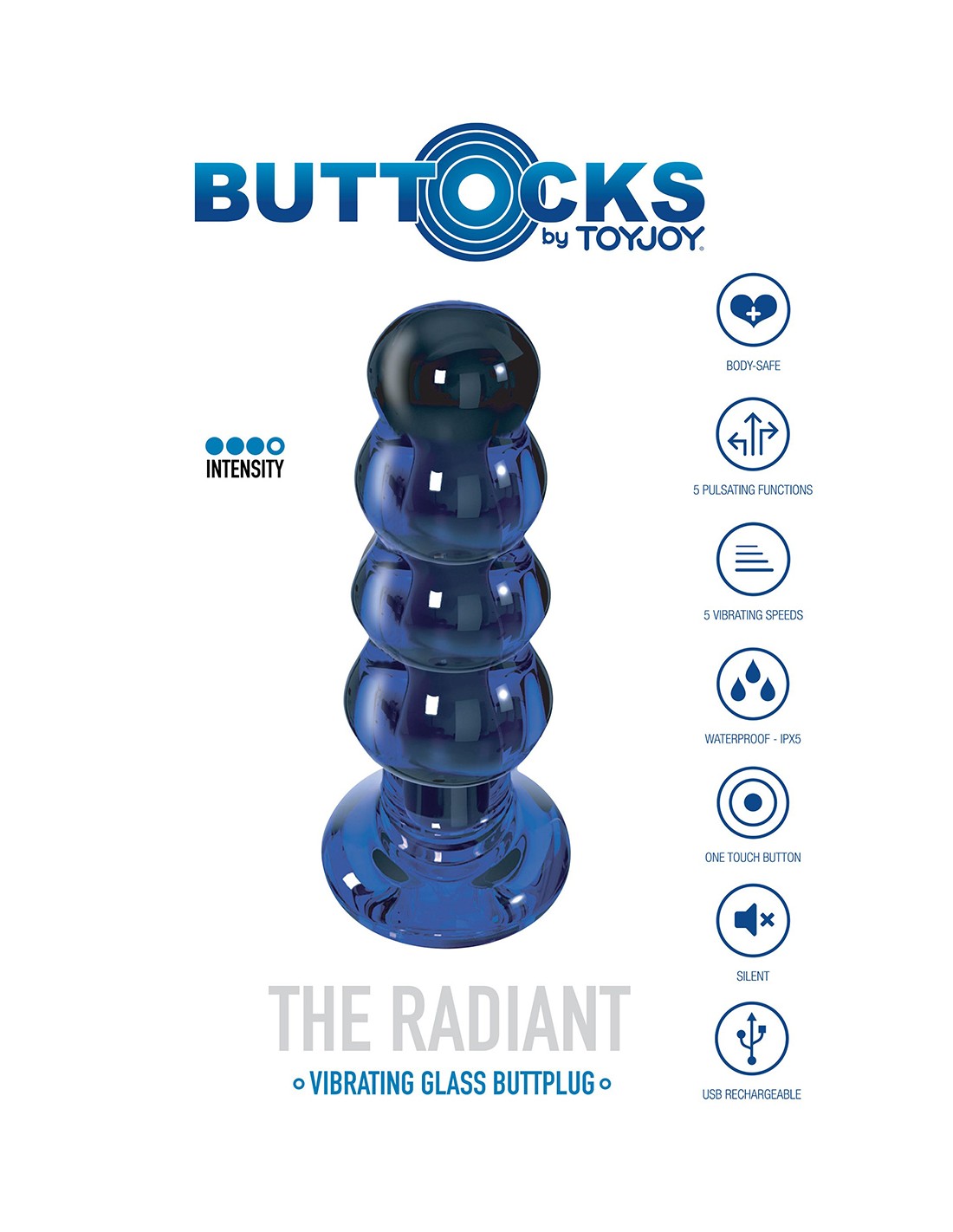 Fabriqué en verre borosilicate de haute qualité, "The Radiant" est vibrant et a une forme annelée idéale pour décupler les sensations pendant la pénétration anale.