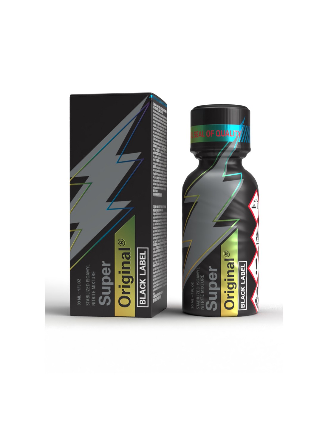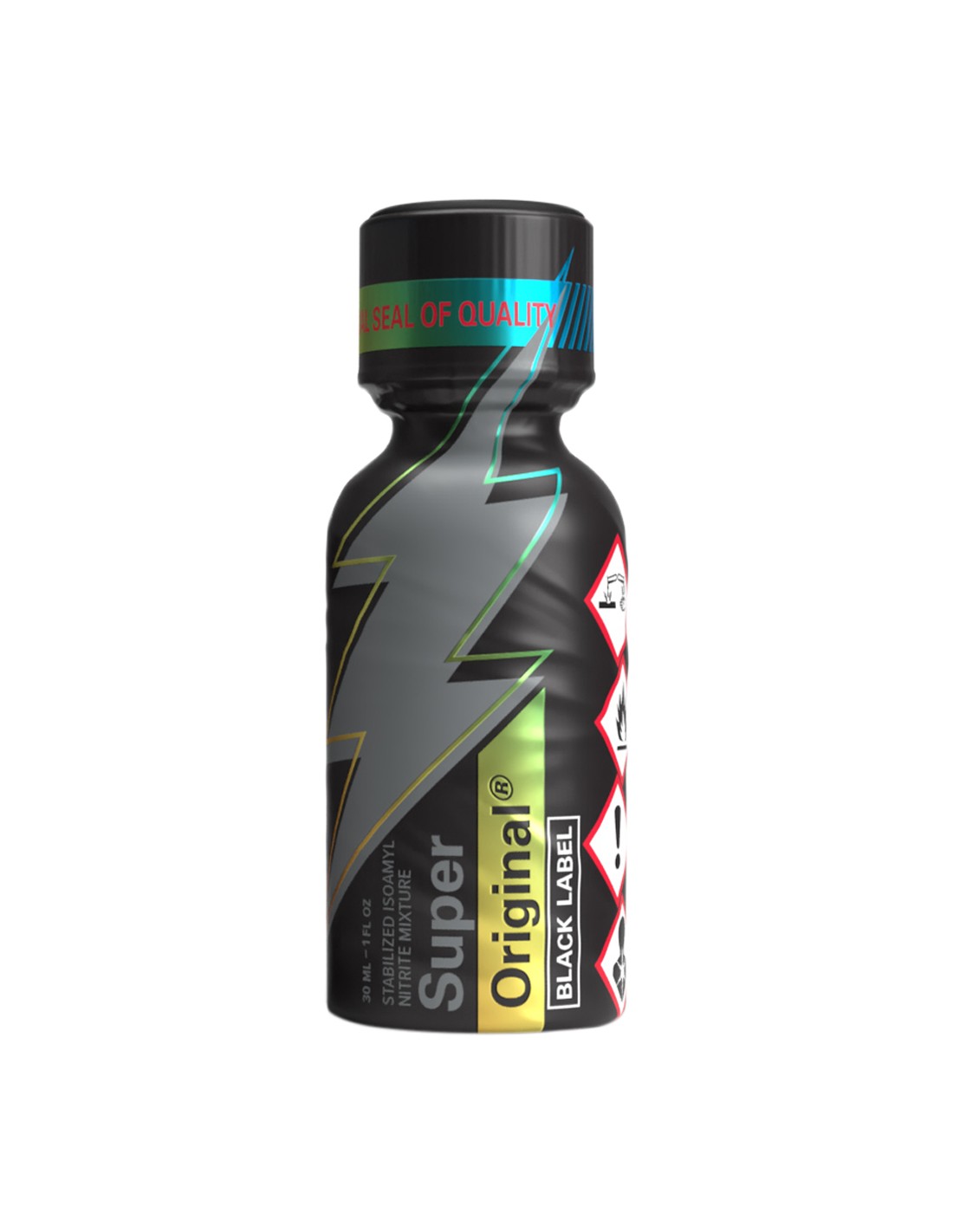 Equipé d'un bouchon anti fuite, le poppers Super Original Black Label est proposé en bouteille de 30 ml.