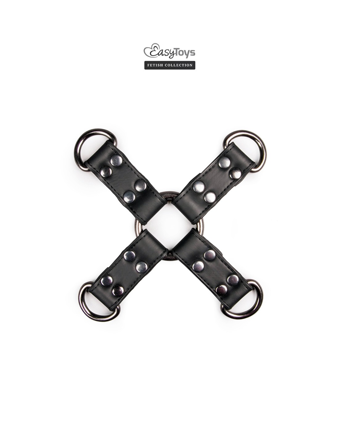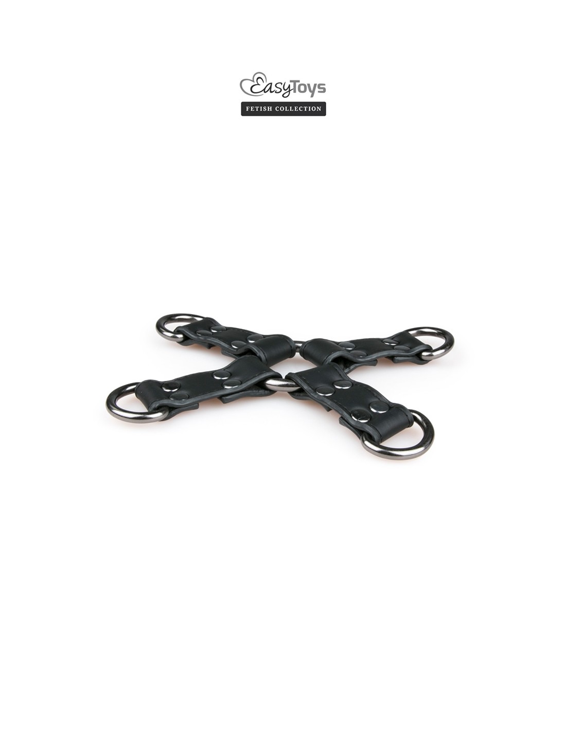Le Hogtie se présente sous la forme d'un solide anneau central en métal auquel 4 anneaux en D sont fixés à l'aide de courtes sangles en cuir souple. Cet accessoire BDSM polyvalent vous permet d'y accrocher menottes, colliers, chaines ou barres de contrainte par exemple, ou tout simplement de passer des cordes dans ses anneaux. Laissez libre court à votre imagination et vos jeux de bondage et autre Shibari prendront une nouvelle dimension.