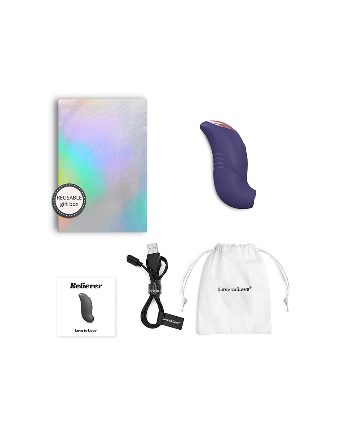 Believer est un condensé de puissance dans un corps parfaitement ergonomique. Doté de la flapping technologie, ce stimulateur clitoridien vous offre sa langue experte, cachée dans son embouchure vibrante. Ses 3 types de mouvement et ses 5 intensités vous permettent une stimulation intense et ciblée, exactement à votre goût.
