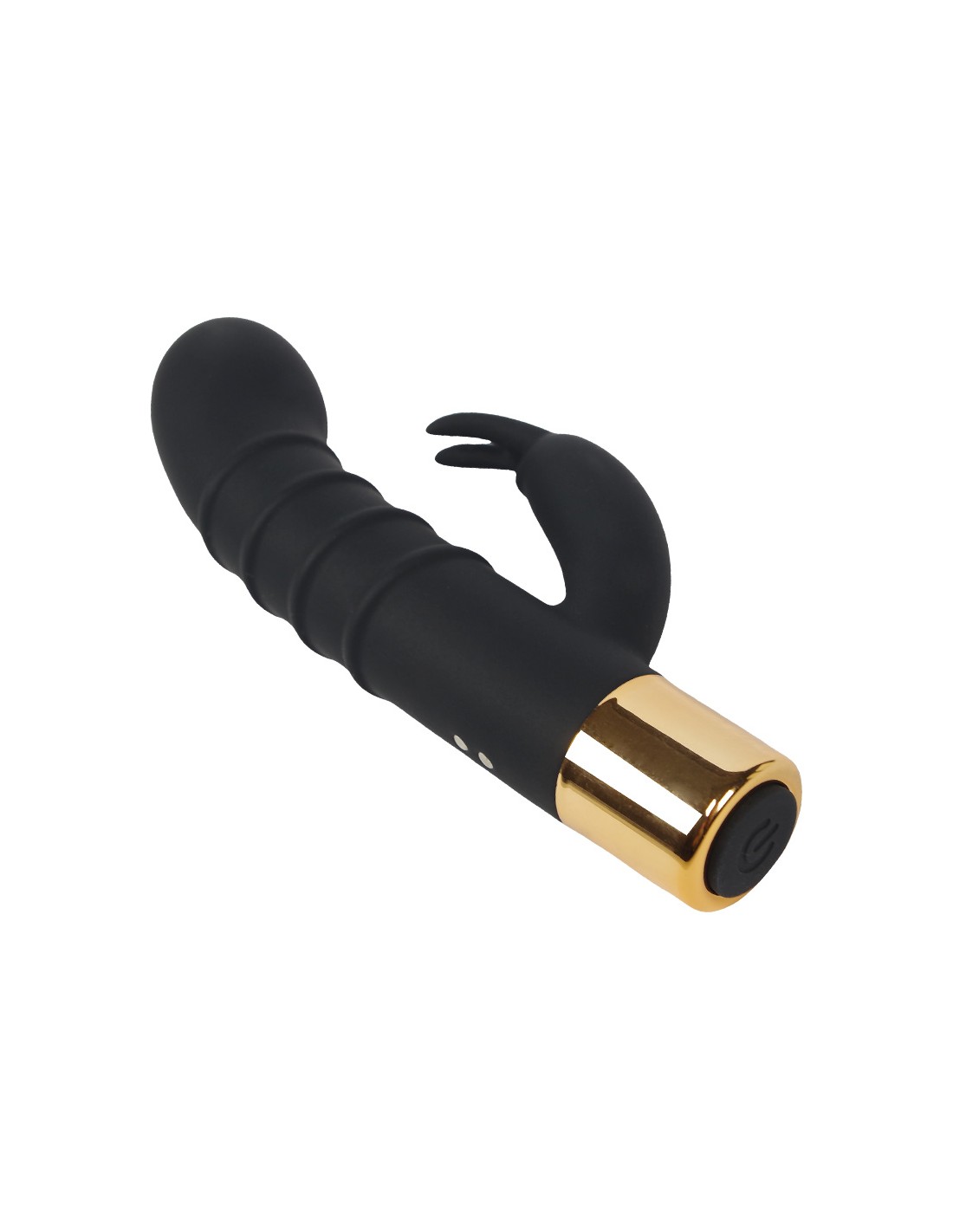 Sextoy Premium moderne, en silicone de haute qualité et au toucher doux, le vibro Rabbit Hawaï est proposé dans une magnifique teinte bicolore noire et dorée.